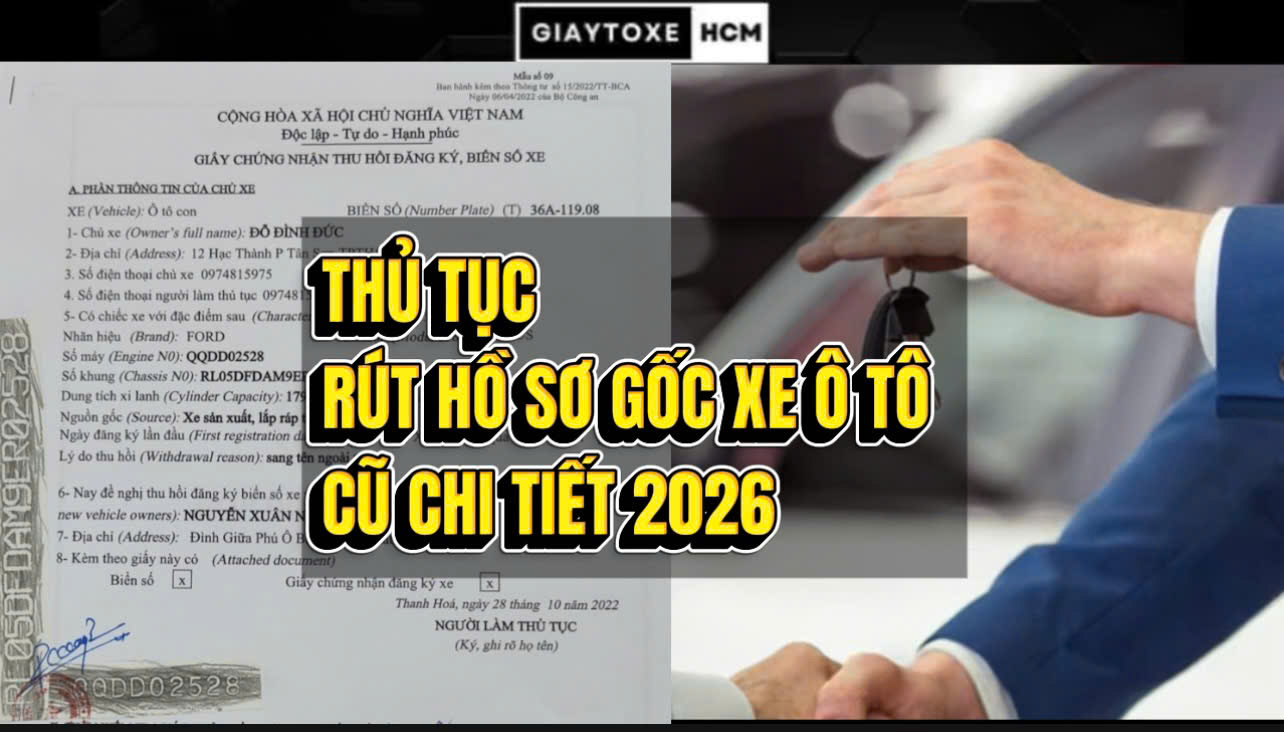 Nếu bạn đang mua bán xe liên tỉnh về TP.HCM và cần RÚT HỒ SƠ GỐC nhanh chóng, chính xác theo quy định 2026: